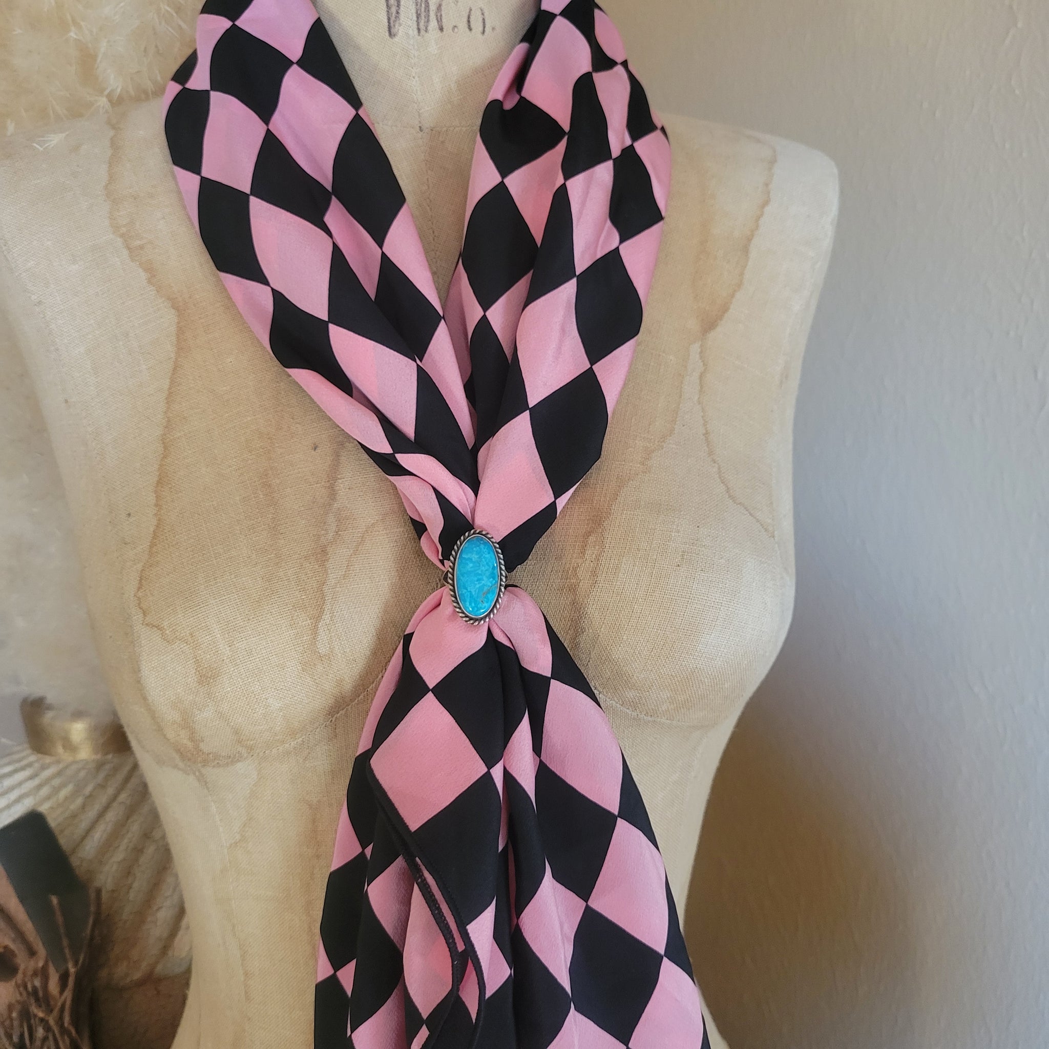 36" - Pink/Black Checkered Silk Wild Rag