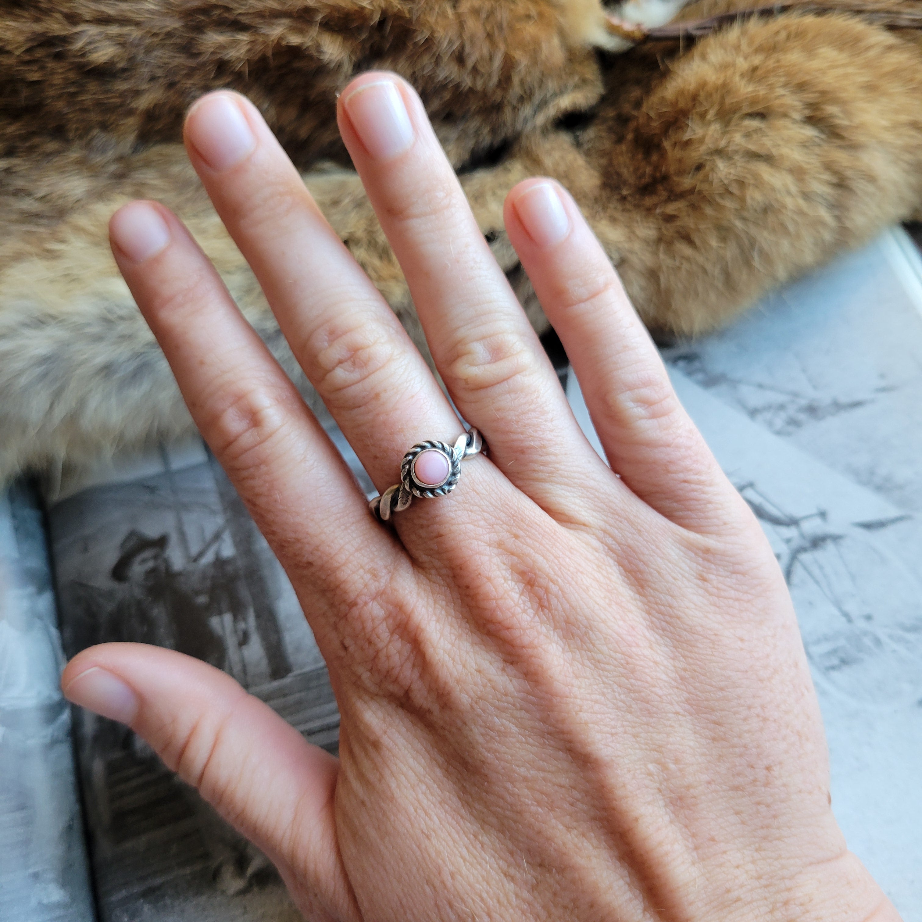 These Pink Conch × Sterling Silver Stacker Rings are the perfect addition to your Turquoise stack!