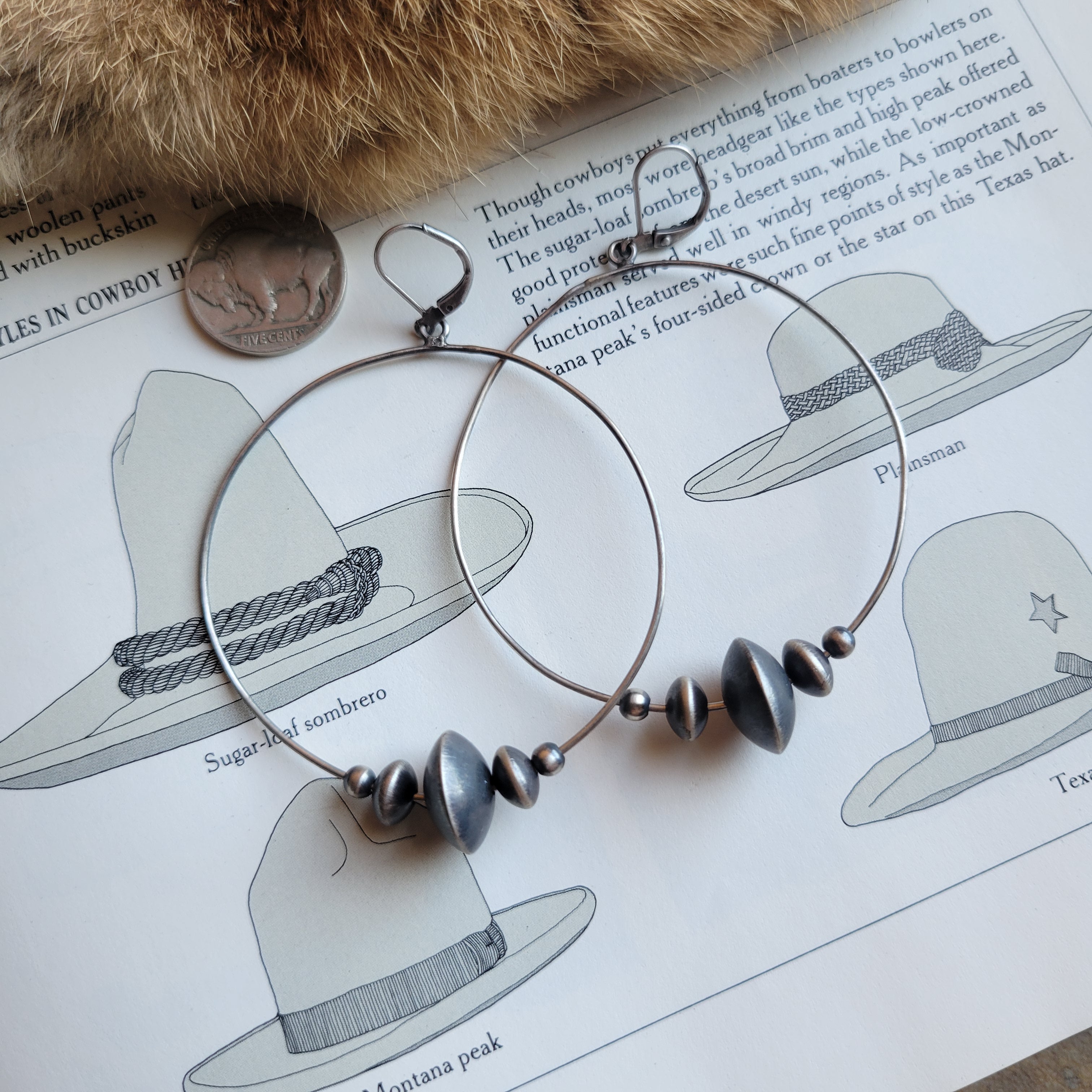 Sterling Silver Hoops with Sterling Navajo Pearls
