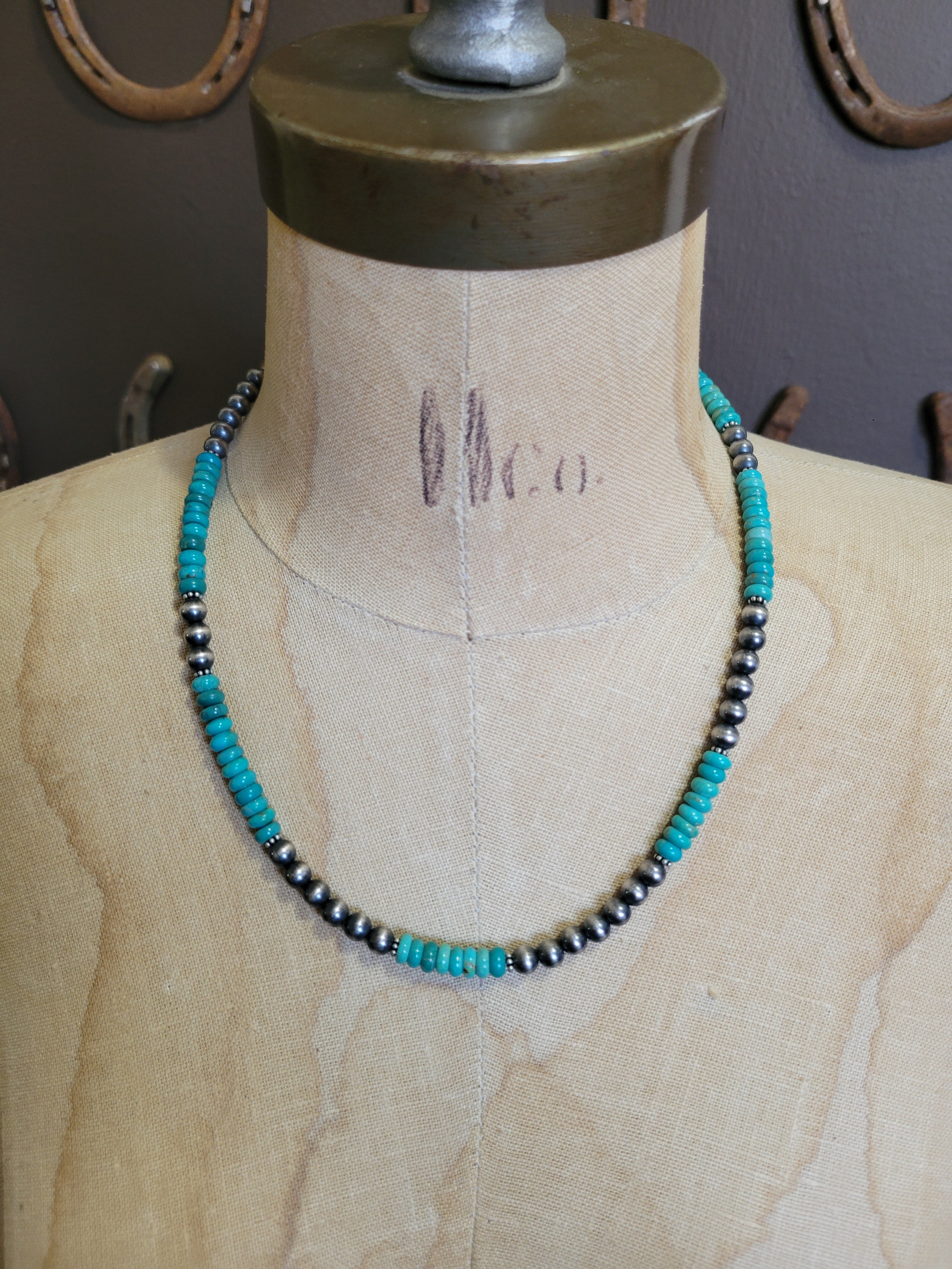 6mm Sterling Silver Pearls alongside Turquoise Beads