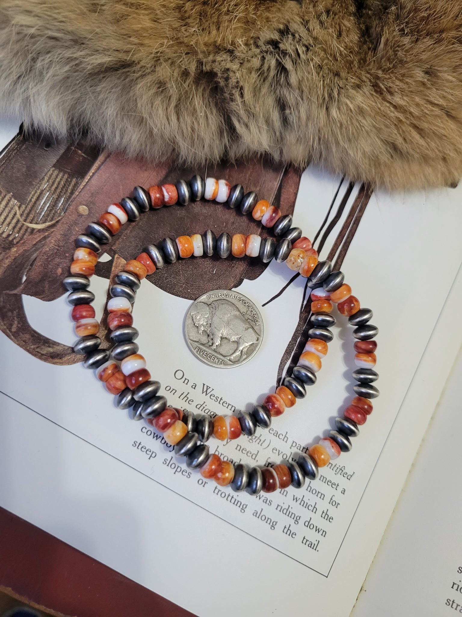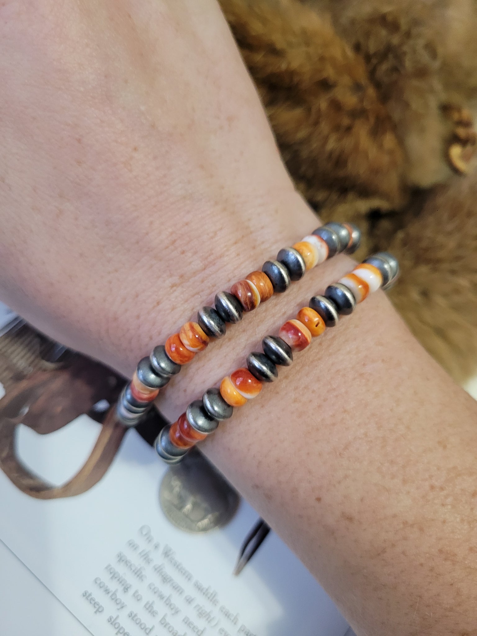 7mm Orange Spiny & Saucer Pearl Bracelet - Stretchy