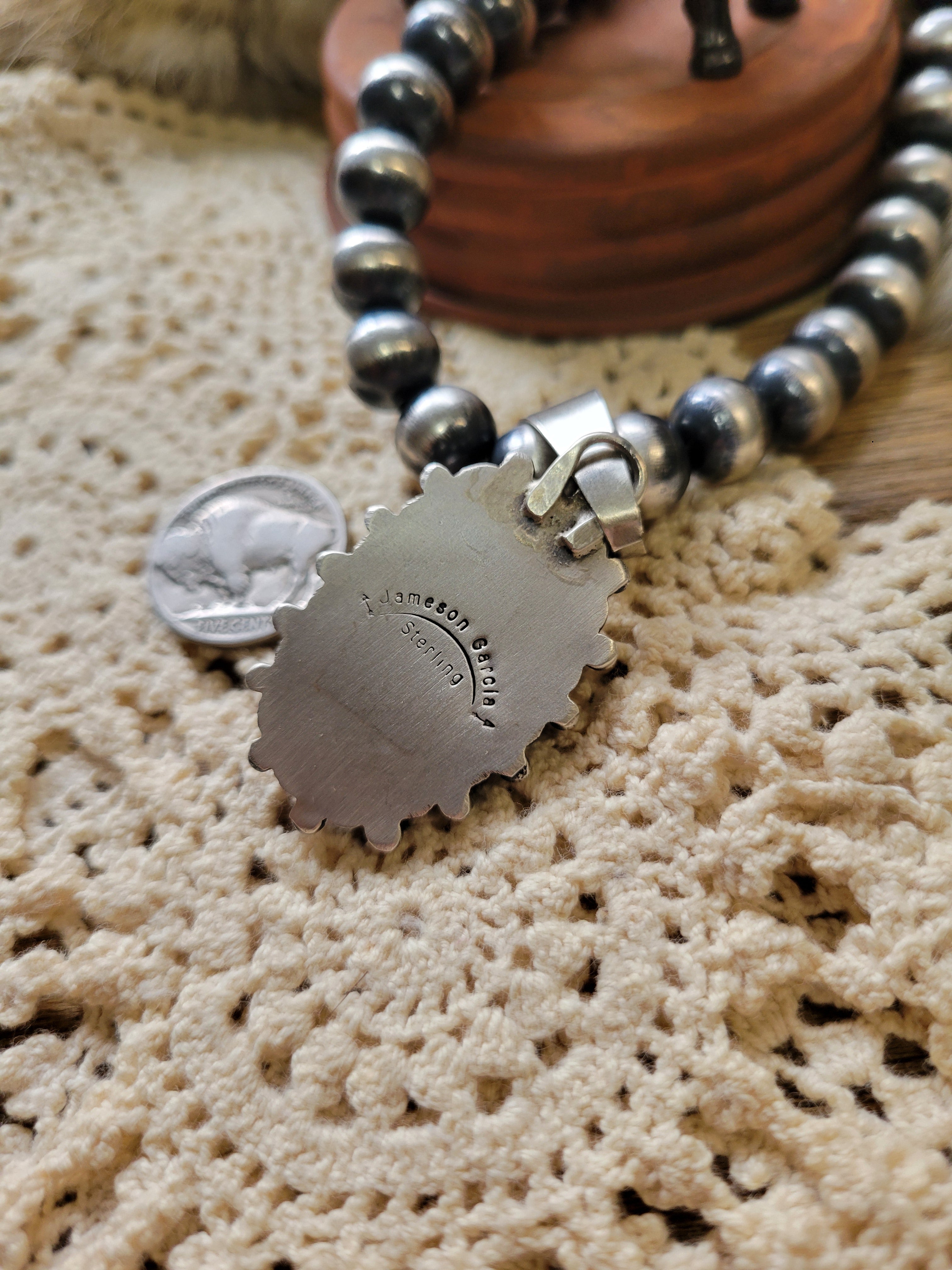 Meet your new favorite accessory! This playful Red Spiny Oyster pendant brings southwestern flair with its fiery red shell and artisan-crafted sterling silver setting. Handmade and signed by a native artist Jameson Garcia, it's a genuine conversation starter. The 12mm bale opening gives you endless styling possibilities with your favorite chains and cords. (Pendant only—the 10mm pearl necklace is just here to show you the perfect size!)