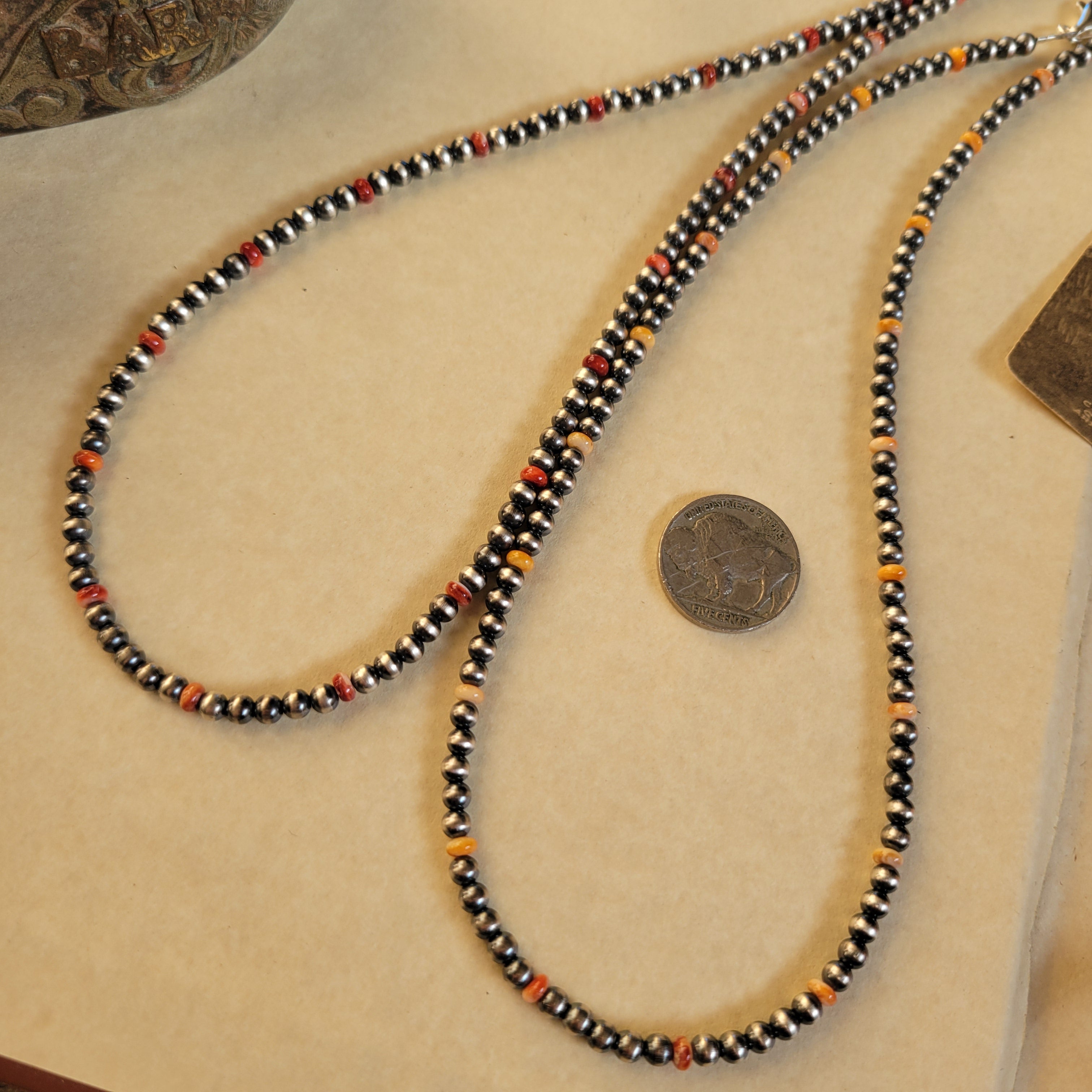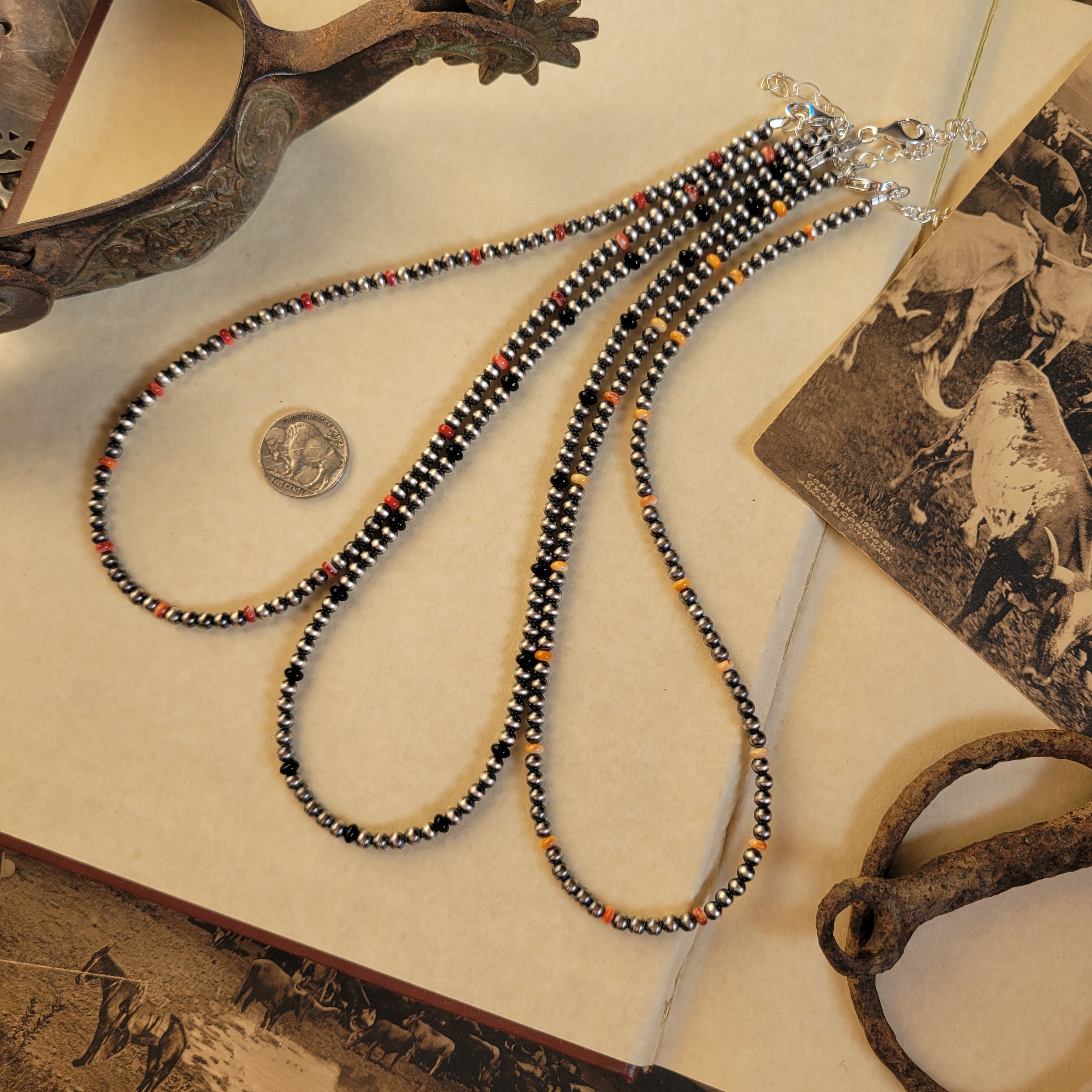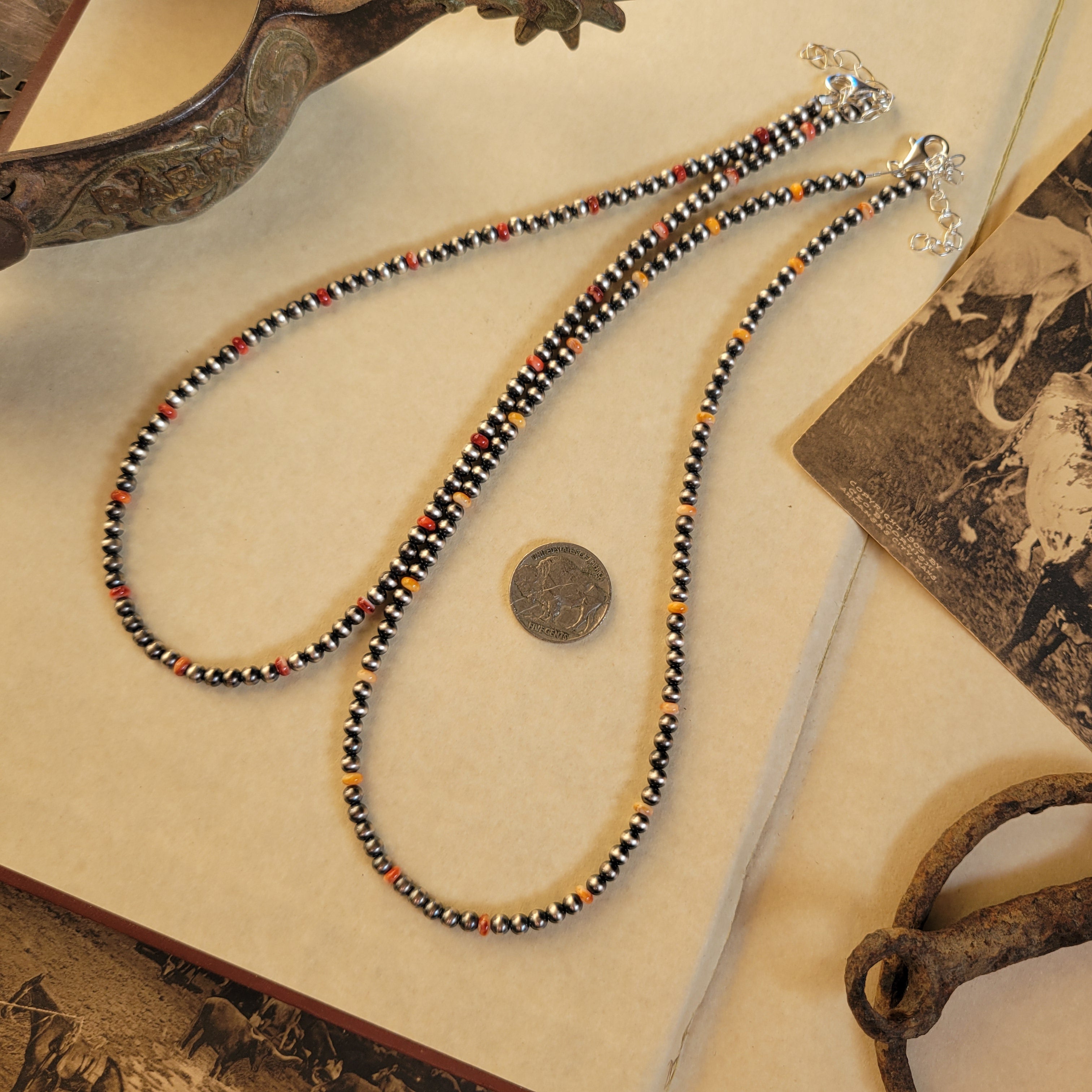 4mm Sterling Pearls with orange & red Spiny Oyster