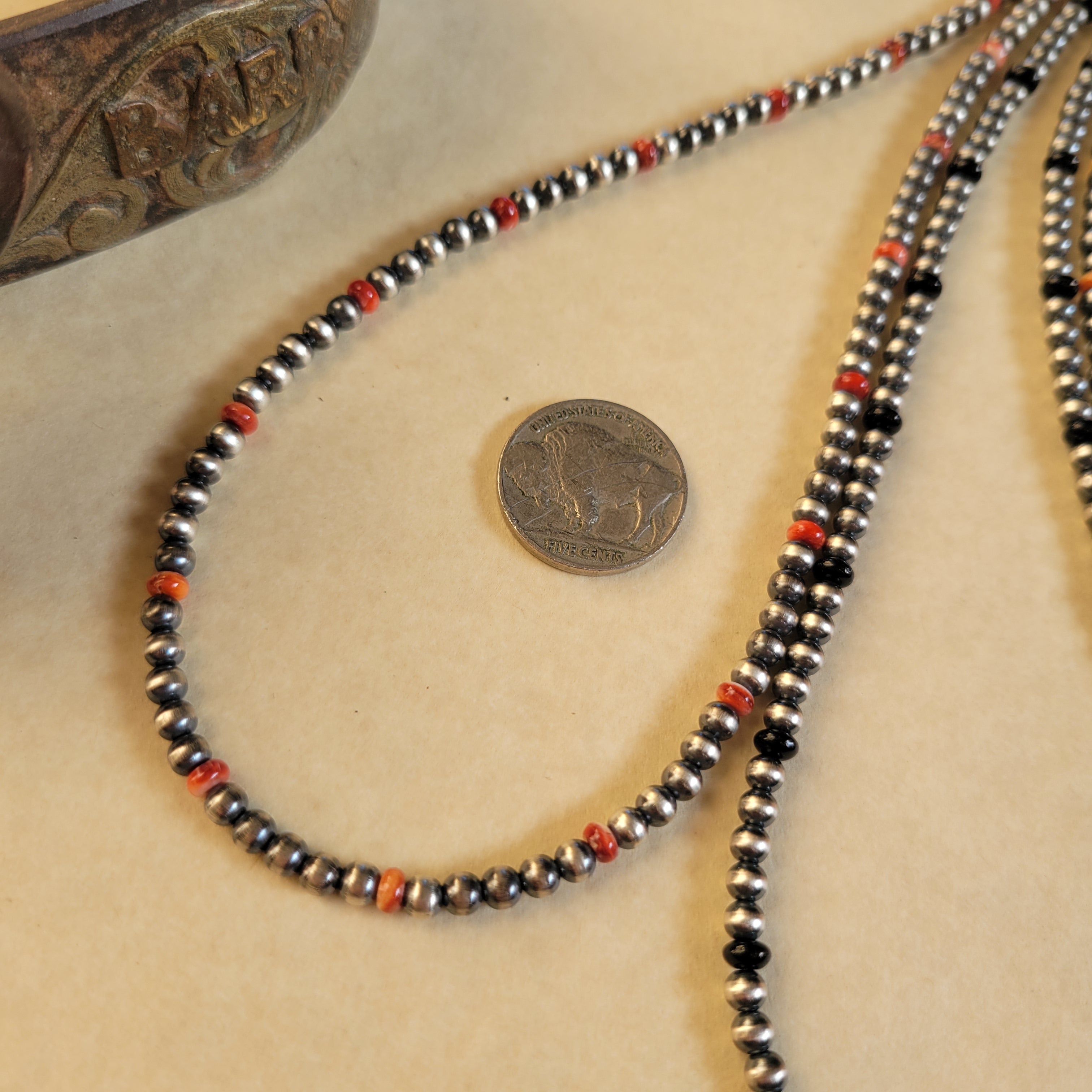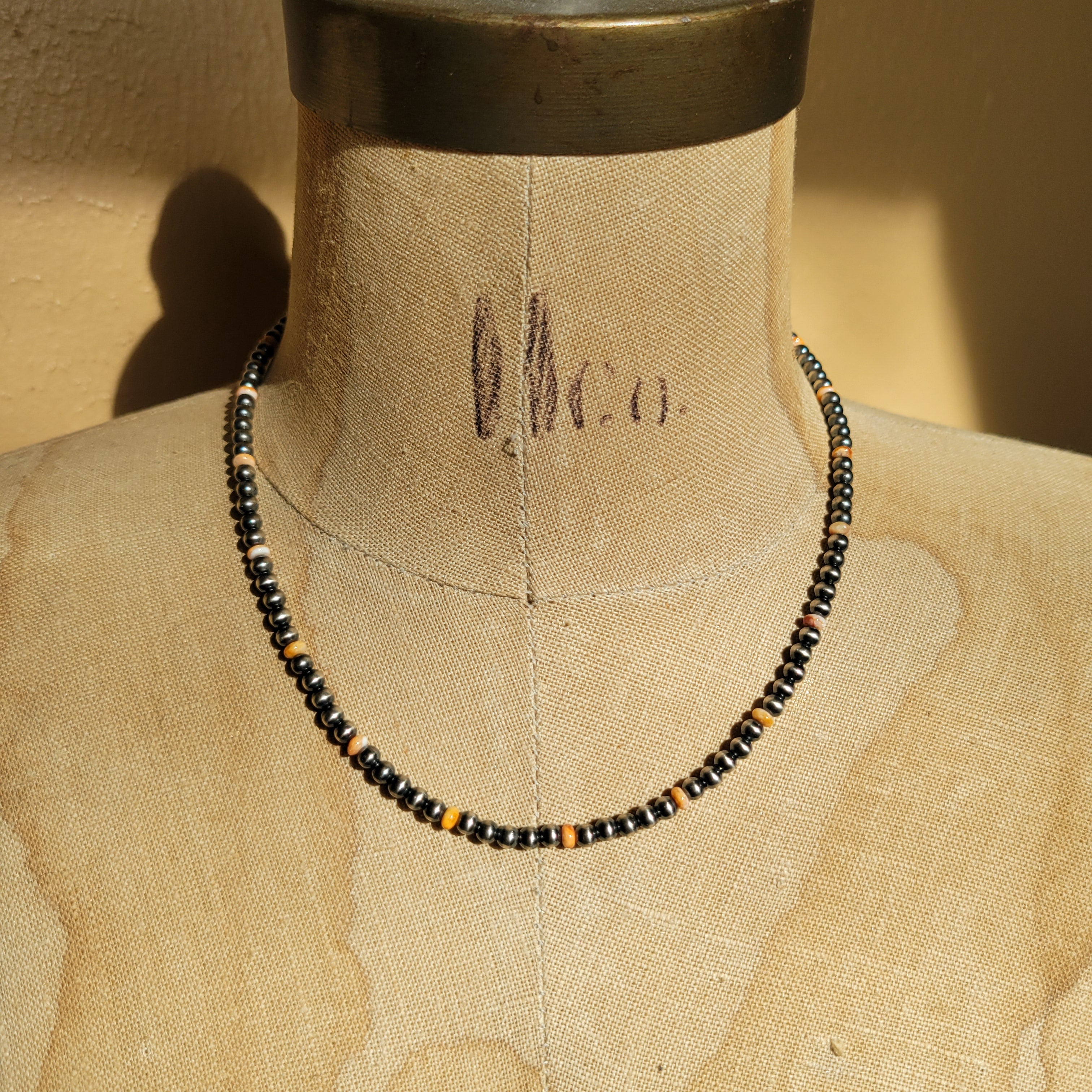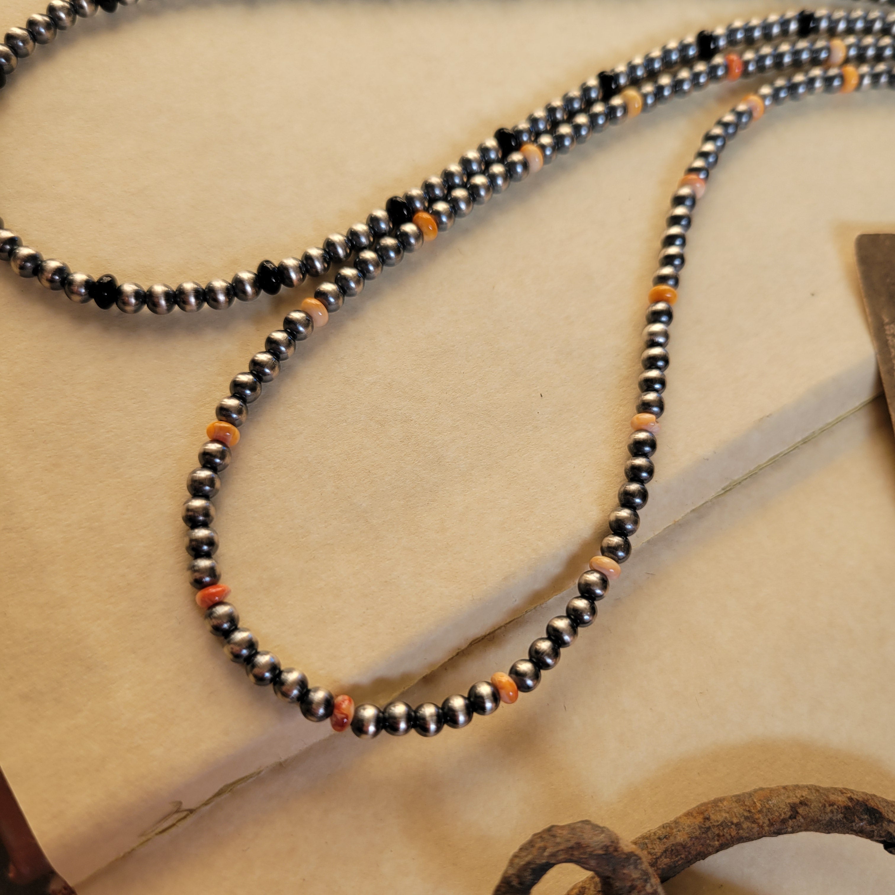 4mm Sterling Pearls with orange & red Spiny Oyster