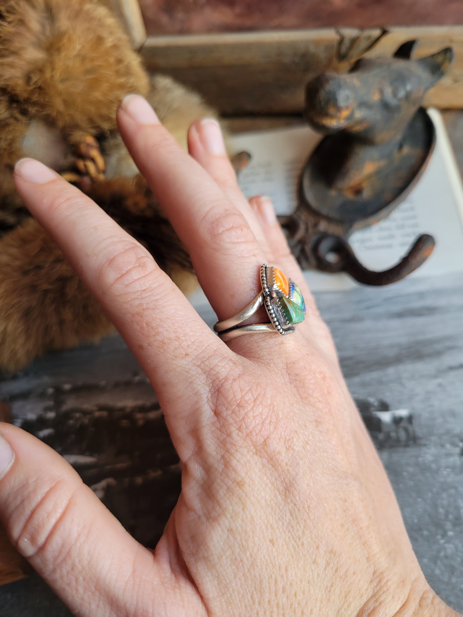 Kingman Turquoise, Orange Spiny Oyster, and Opal set in Sterling Silver
