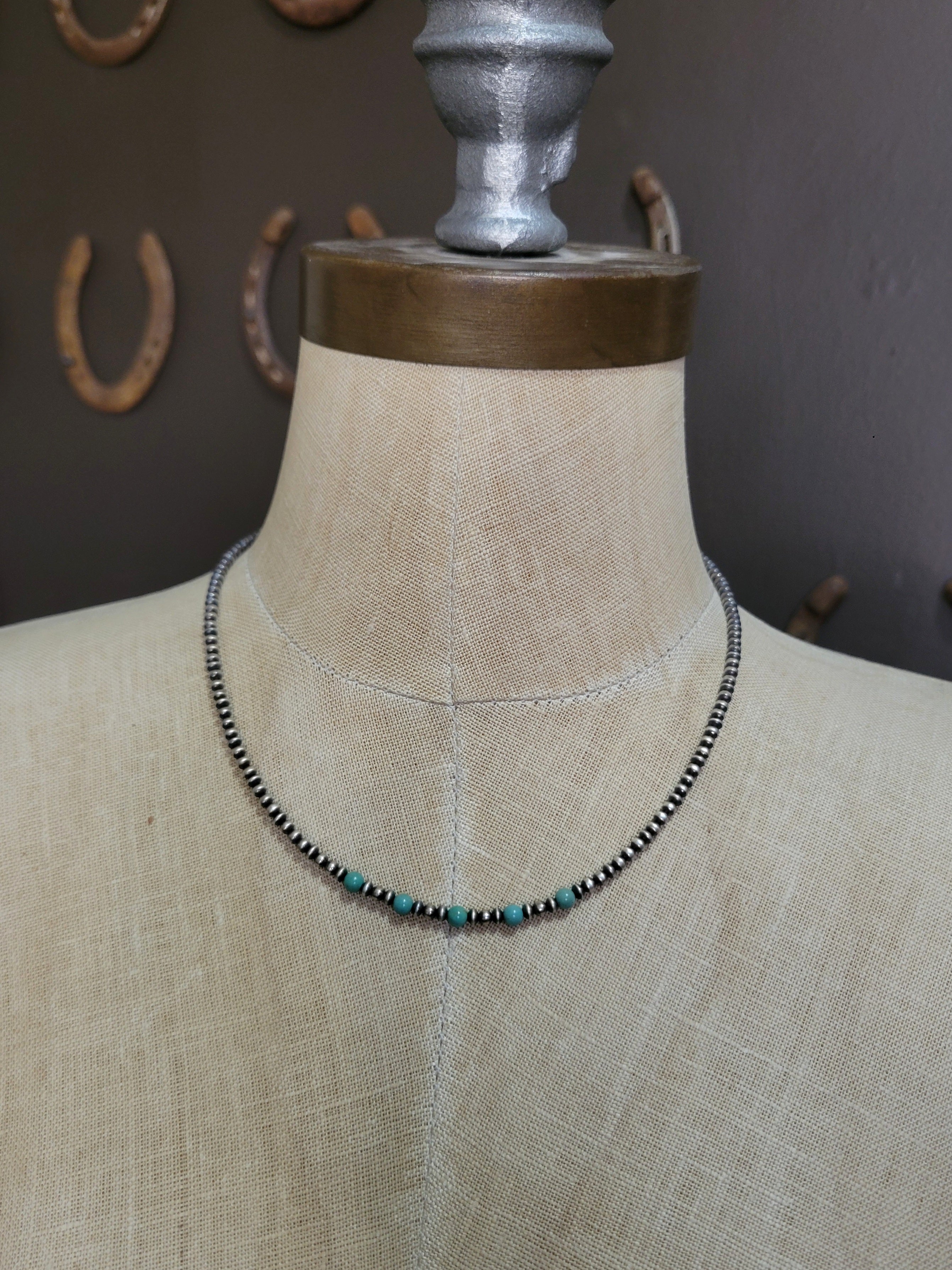 • Style: Petite Silver Pearl Necklace featuring Saucer pearls and turquoise accents.