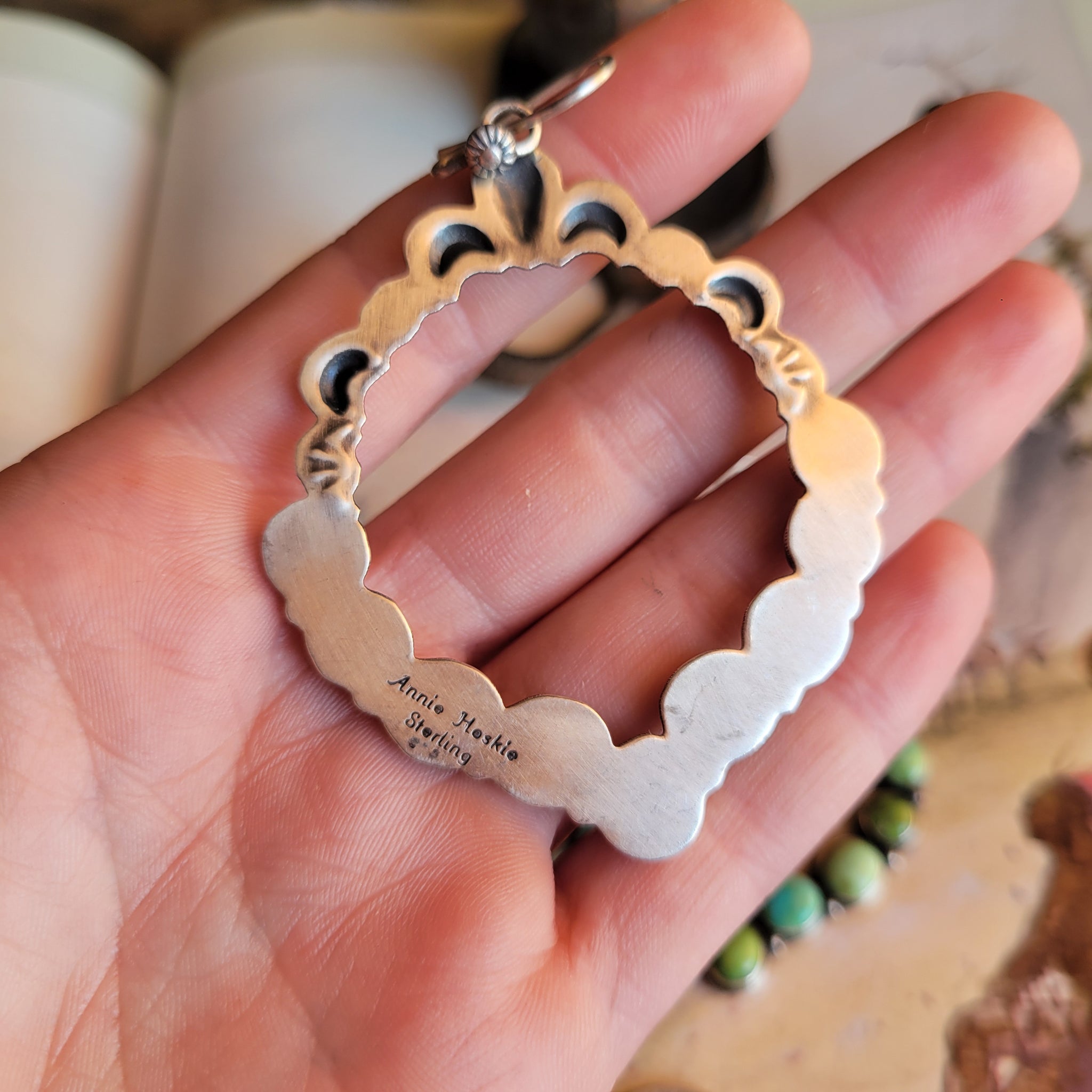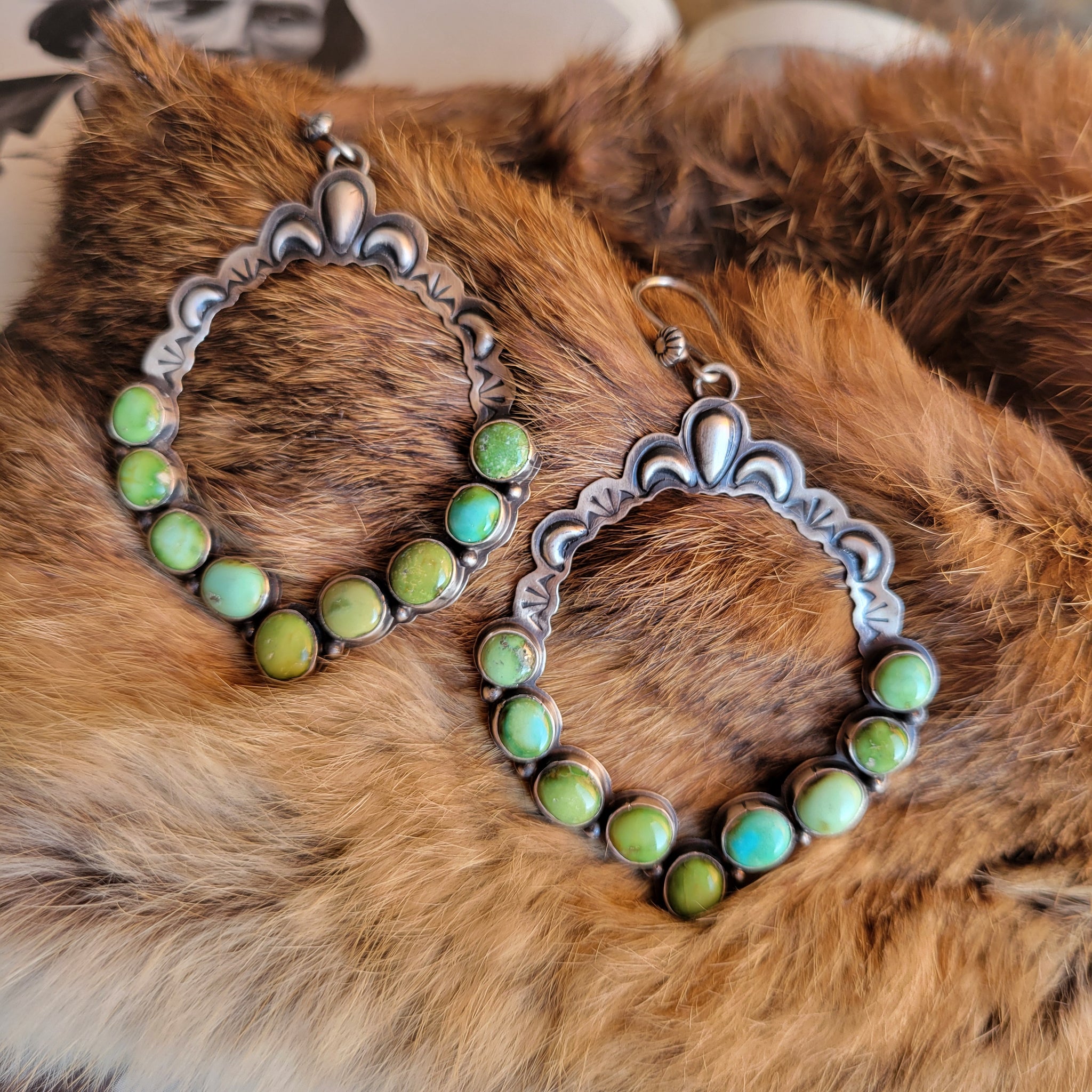 Sonoran Turquoise & Sterling Silver Hoop Earrings Handmade by Native American Artist Annie Hoskie